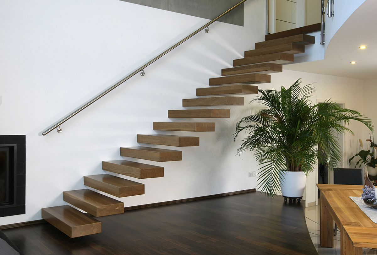 L’escalier s’intègre parfaitement dans les intérieurs modernes. Il les réchauffe grâce au bois et leur apporte une touche irréelle et pure.